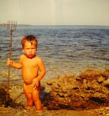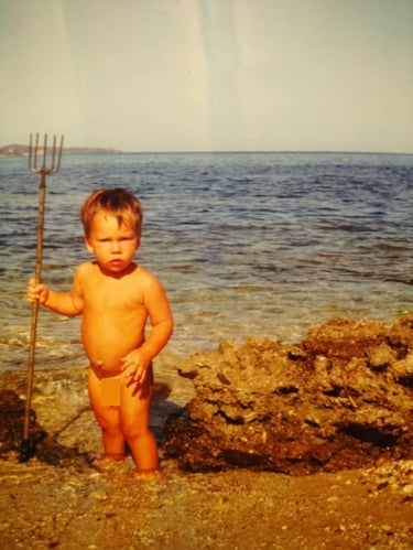 Schon seit meinen ersten Schritten habe ich die meisten meiner Sommerferien im Dorf Zakros verbracht, wo wir ein Haus besitzen. Dort habe ich unter anderem gelernt, auf Dächern zu laufen und Tintenfische zu fangen, wie das Foto links zeigt.